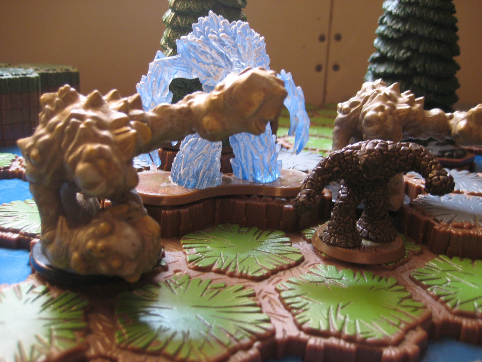 Because of his ability to turn water into ice, the Greater Ice Elemental may assist the Ice Troll Berserker when the Ice Troll Berserker rolls for ICE TROLL CHARGE. If the Ice Troll Berserker is on an ice space, he may also remove an extra wound marker due to his COLD REGENERATE power.